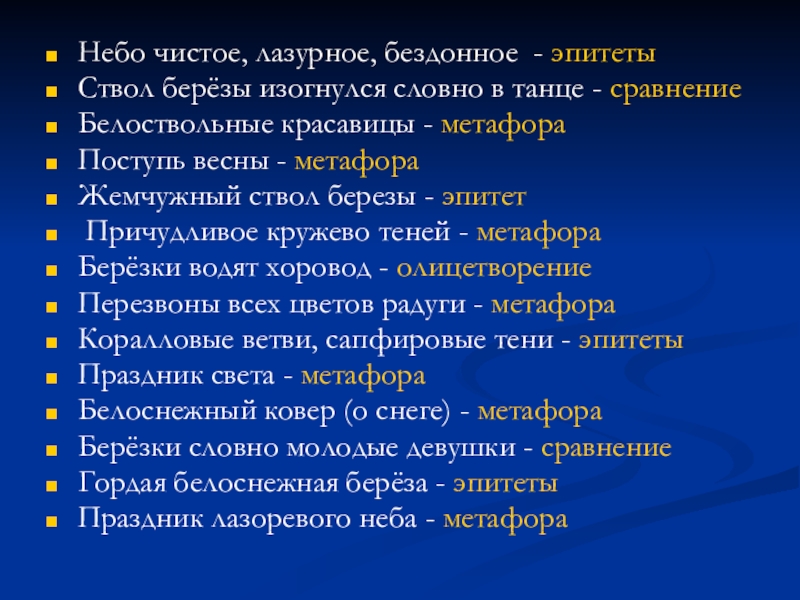 Слайд 20Небо чистое, лазурное, бездонное - эпитеты