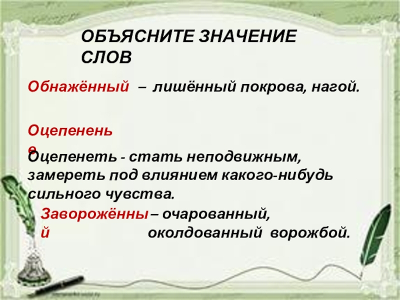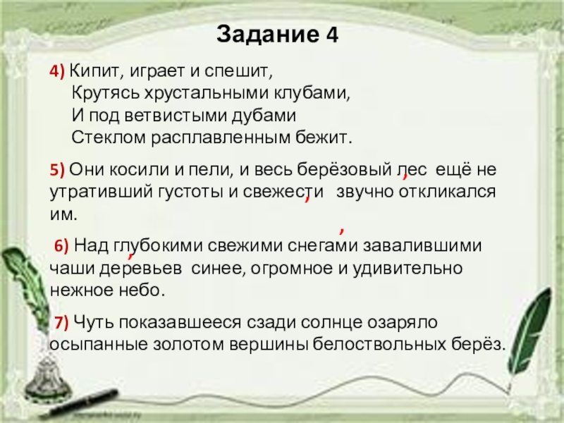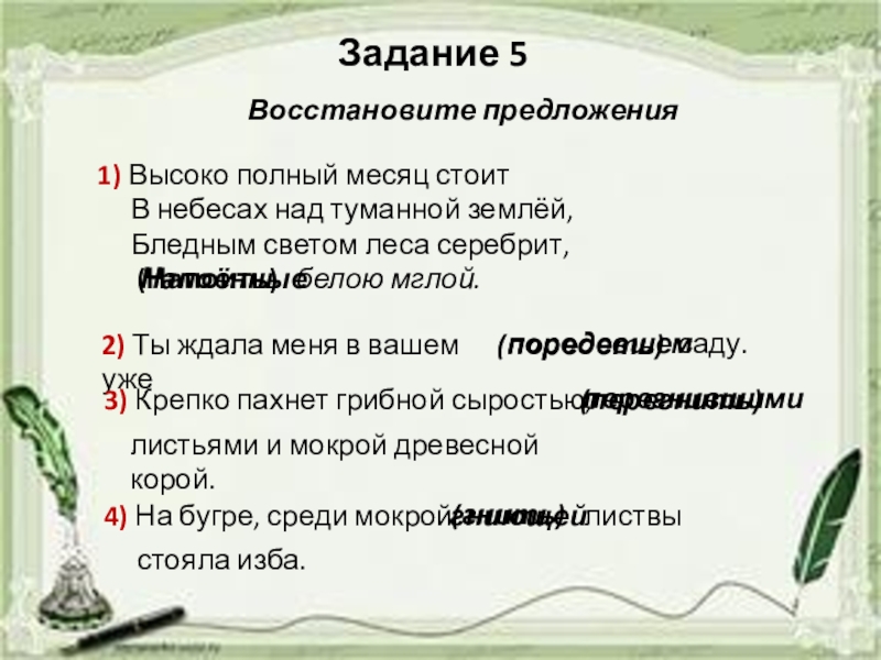 4) Багряная листва покрытая морозною росою шуршит в аллее под моей ногой.