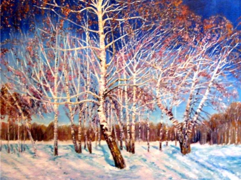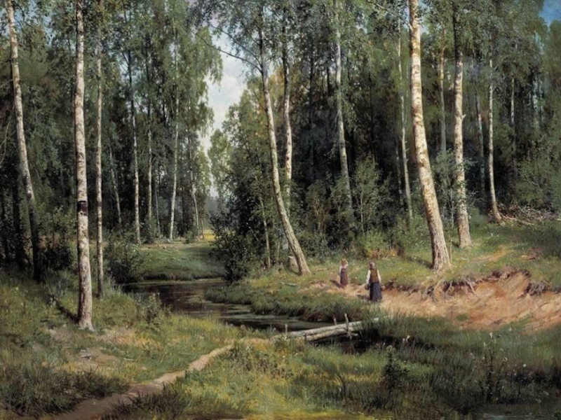 2) А возле леса ещё тянется длинный островок снега, и ярко-голубые подснежники пробиваются из-под гниющ…й листвы.