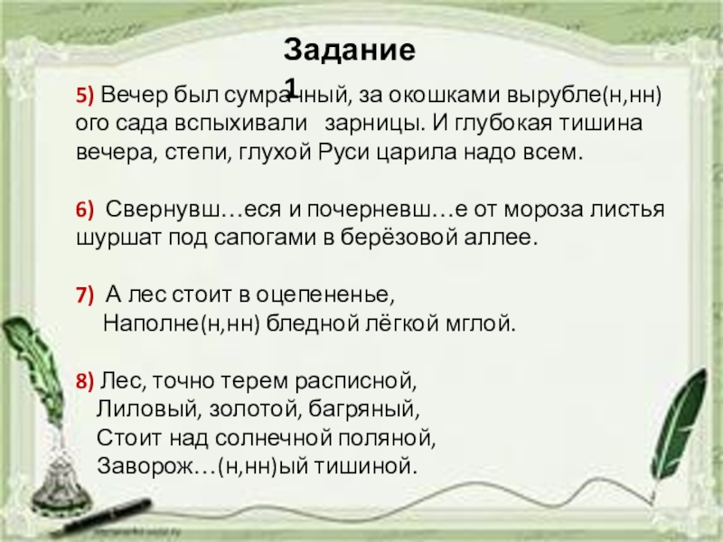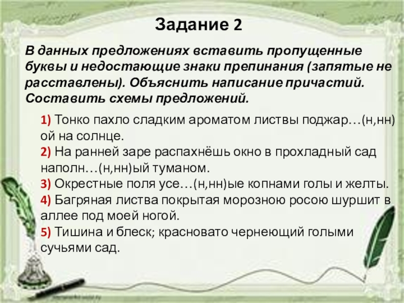 2) На ранней заре распахнёшь окно в прохладный сад наполн…(н,нн)ый туманом.