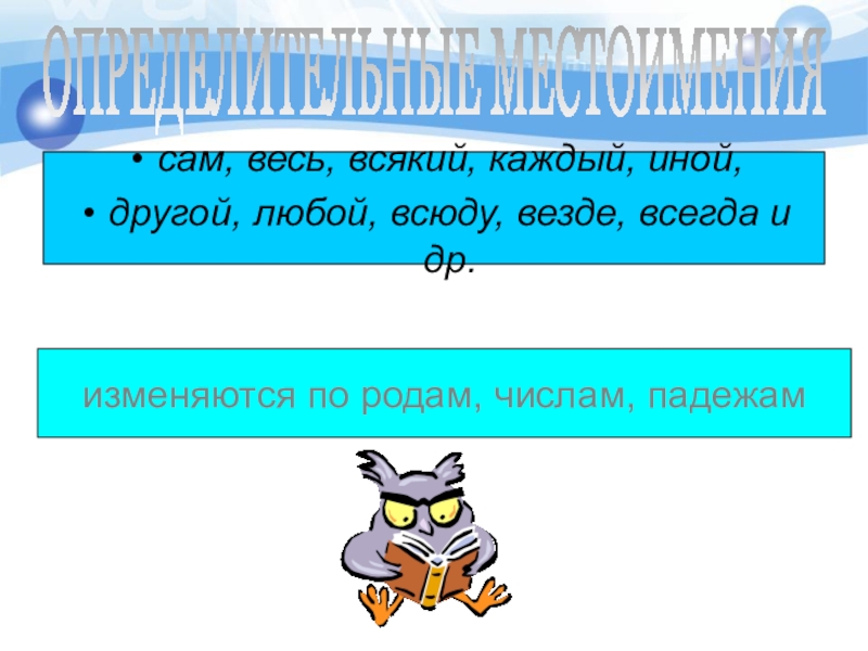 Слайд 28ОПРЕДЕЛИТЕЛЬНЫЕ МЕСТОИМЕНИЯ