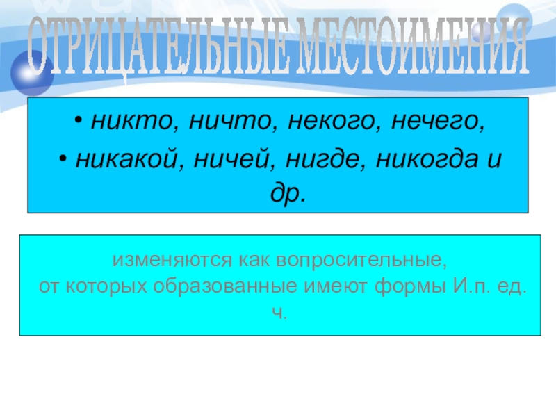 Слайд 26ОТРИЦАТЕЛЬНЫЕ МЕСТОИМЕНИЯ