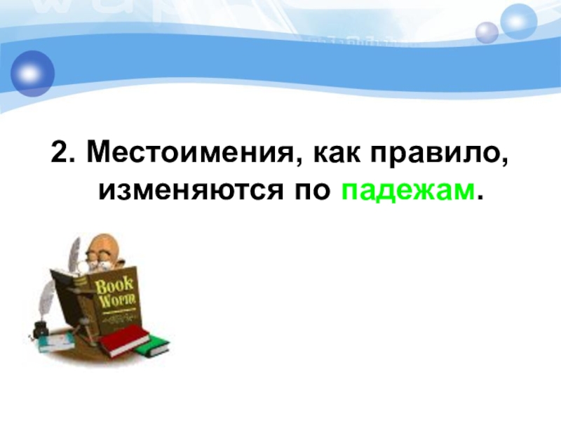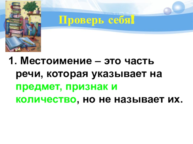 1. Местоимение – это часть речи, которая указывает на предмет,