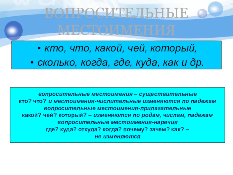 Слайд 22ВОПРОСИТЕЛЬНЫЕ МЕСТОИМЕНИЯ