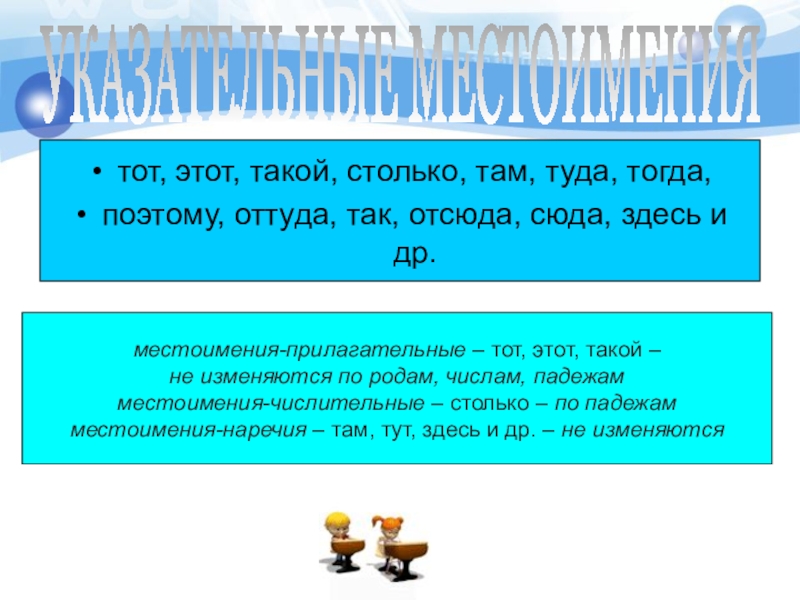 Слайд 31УКАЗАТЕЛЬНЫЕ МЕСТОИМЕНИЯ