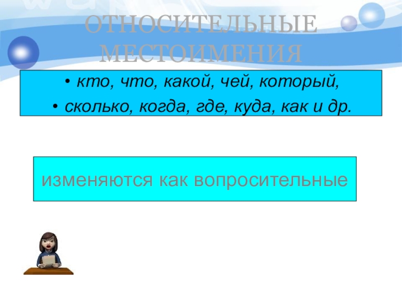 Слайд 23ОТНОСИТЕЛЬНЫЕ МЕСТОИМЕНИЯ