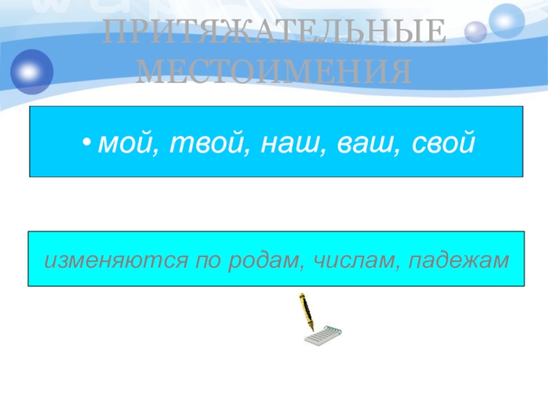 Слайд 20ПРИТЯЖАТЕЛЬНЫЕ МЕСТОИМЕНИЯ
