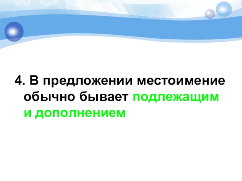 4. В предложении местоимение обычно бывает подлежащим и дополнением