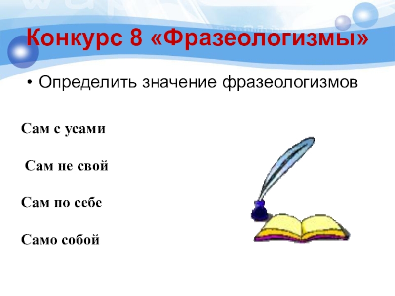 Слайд 30Конкурс 8 «Фразеологизмы»