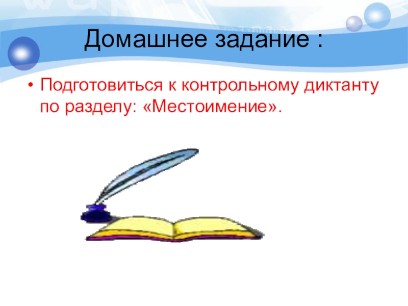 Подготовиться к контрольному диктанту по разделу: «Местоимение».