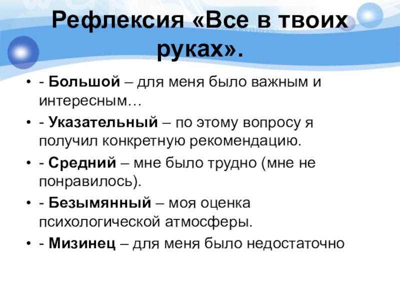- Указательный – по этому вопросу я получил конкретную рекомендацию.