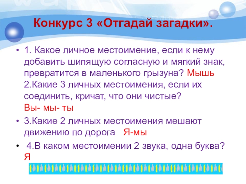 Слайд 15Конкурс 3 «Отгадай загадки».
