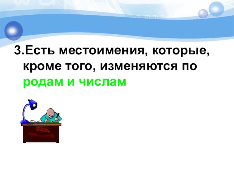 Слайд 73.Есть местоимения, которые, кроме того, изменяются по родам и числам