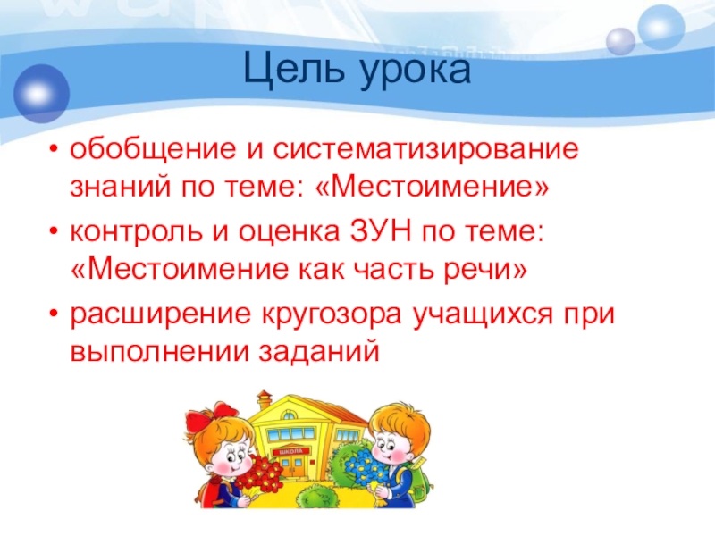обобщение и систематизирование знаний по теме: «Местоимение»
