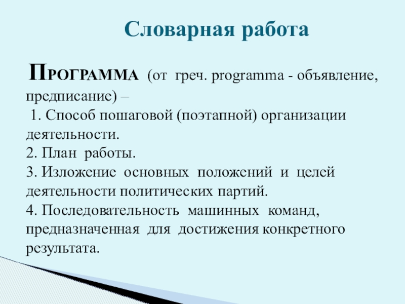 Программа работы