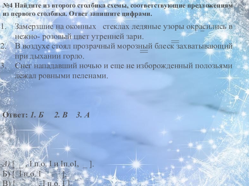 №4 Найдите из второго столбика схемы, соответствующие предложениям из первого столбика. Ответ запишите цифрами.