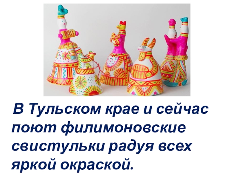 Слайд 14 В Тульском крае и сейчас поют филимоновские свистульки радуя