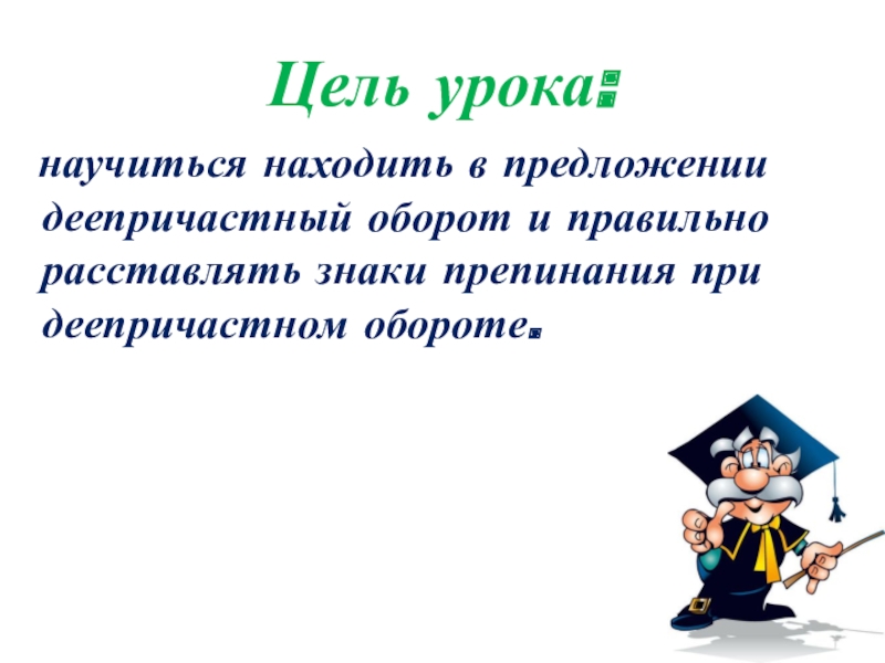 научиться находить в предложении деепричастный оборот и правильно расставлять