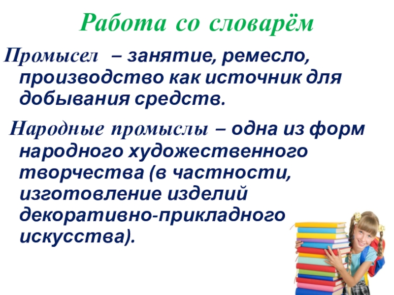 Народные промыслы – одна из форм народного художественного творчества (в частности, изготовление изделий декоративно-прикладного искусства).
