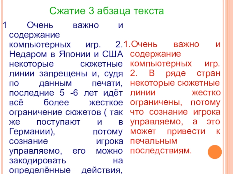 1.Очень важно и содержание компьютерных игр. 2. В ряде стран некоторые сюжетные линии жестко ограничены, потому что сознание игрока управляемо, а это может привести к печальным последствиям.