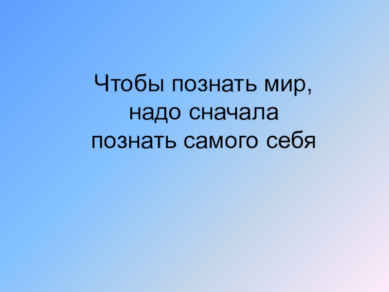 Слайд 9Чтобы познать мир, надо сначала познать самого себя