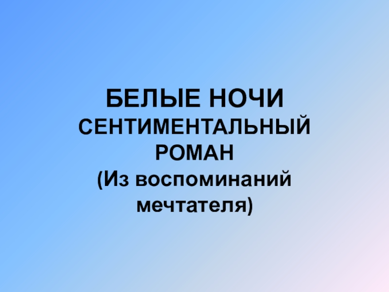 БЕЛЫЕ НОЧИСЕНТИМЕНТАЛЬНЫЙ РОМАН(Из воспоминаний мечтателя)