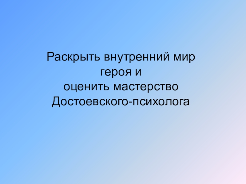 Раскрыть внутренний мир героя и оценить мастерство Достоевского-психолога