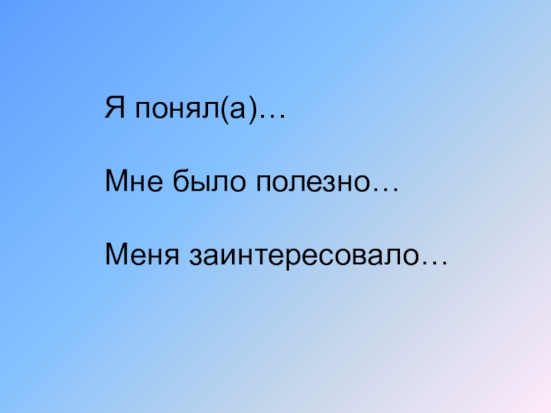 Я понял(а)…Мне было полезно…Меня заинтересовало…