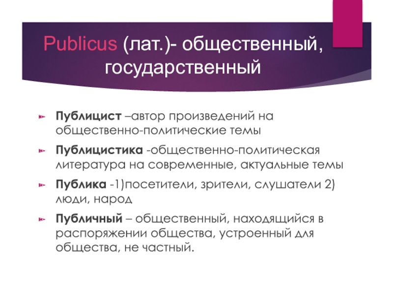 Публичный – общественный, находящийся в распоряжении общества, устроенный для общества, не частный.