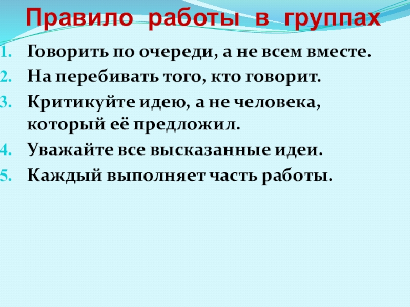 Правило работы в группах