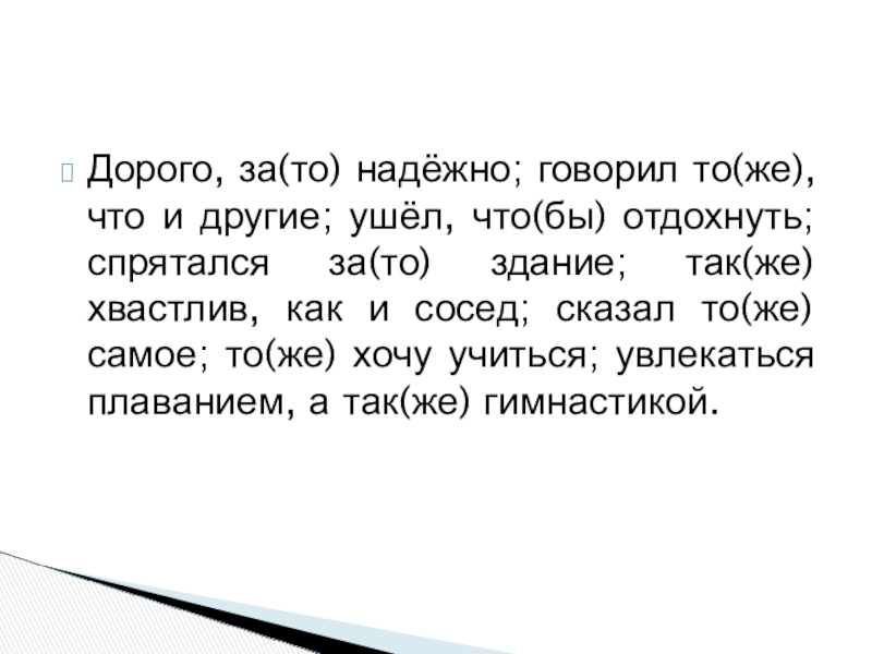 Цель урока: закрепление знаний, умений и навыков слитного написания союзов тоже, также, чтобы, зато.