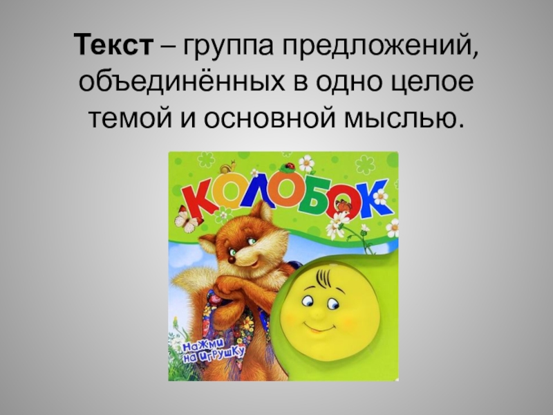 Слайд 3Текст – группа предложений, объединённых в одно целое темой и основной мыслью.