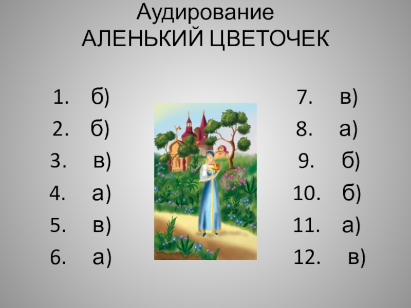 Аудирование АЛЕНЬКИЙ ЦВЕТОЧЕК 1.  б)