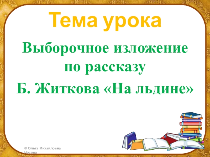 Тема урокаВыборочное изложение по рассказу Б. Житкова «На льдине»