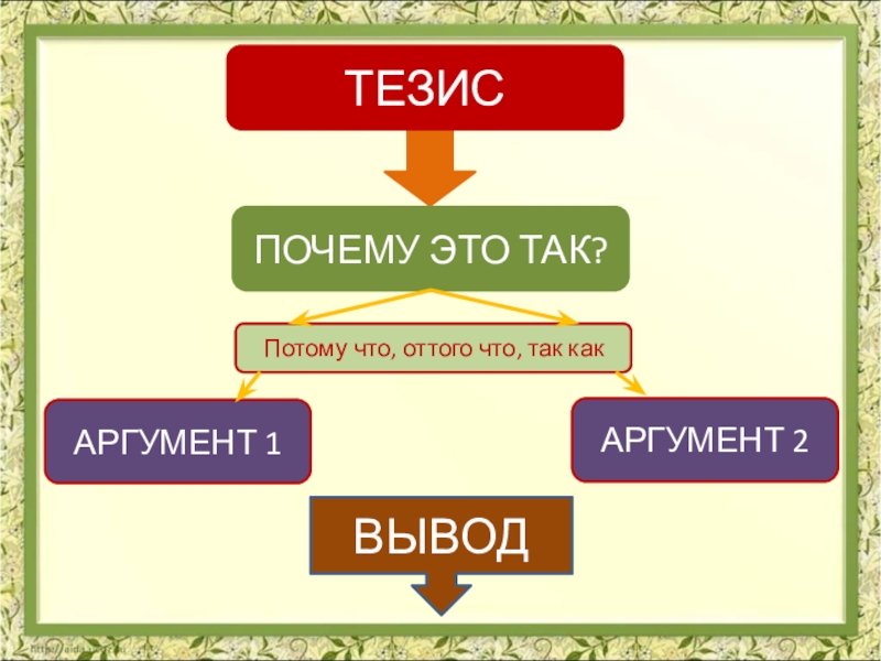 В тексте даётся ответ на вопрос: Почему человек/ предмет такой? Почему он поступает так, а не иначе? Почему мы утверждаем это?