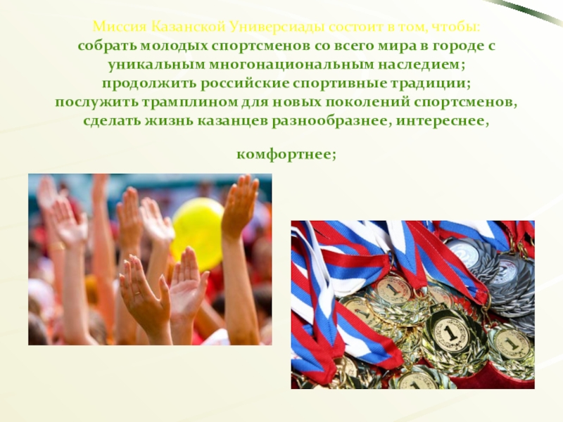 Слайд 35Миссия Казанской Универсиады состоит в том, чтобы: