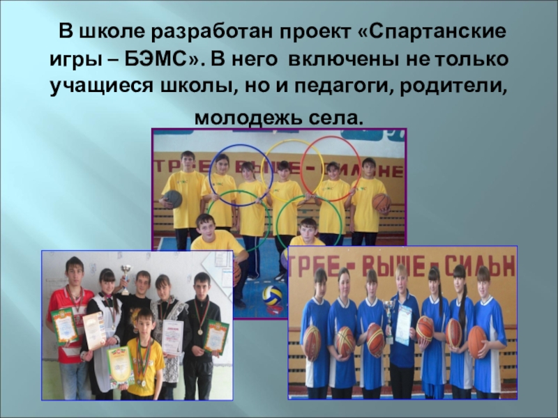 Слайд 34 В школе разработан проект «Спартанские игры – БЭМС». В него