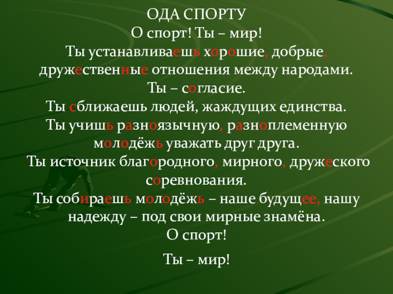 Слайд 31ОДА СПОРТУ