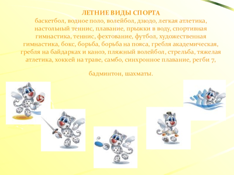 Слайд 30ЛЕТНИЕ ВИДЫ СПОРТА