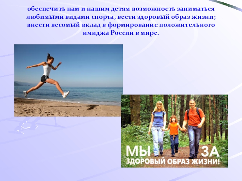 Слайд 36обеспечить нам и нашим детям возможность заниматься любимыми видами спорта, вести