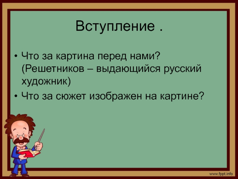 Вступление .Что за картина перед нами? (Решетников – выдающийся русский художник)Что за сюжет изображен на картине?
