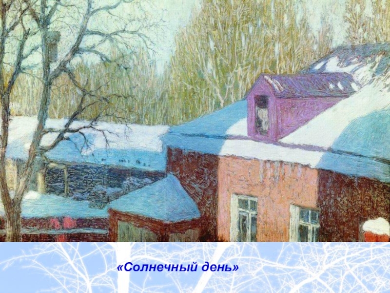 часто говорил своим ученикам. Густеют тени, светлеет горизонт, солнце на снегу вспыхивает неожиданными золотистыми и охристо-лиловыми пятнами. Кажется, что еще несколько мгновений и сумерки погасят эту красивую пору дня".