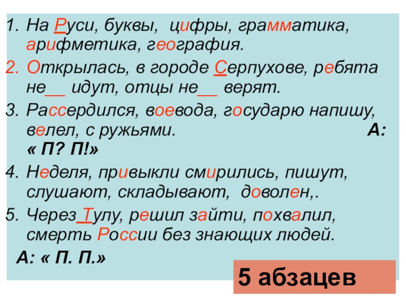 5.Через Тулу, решил зайти, похвалил, смерть России без знающих людей. А: « П. П.»