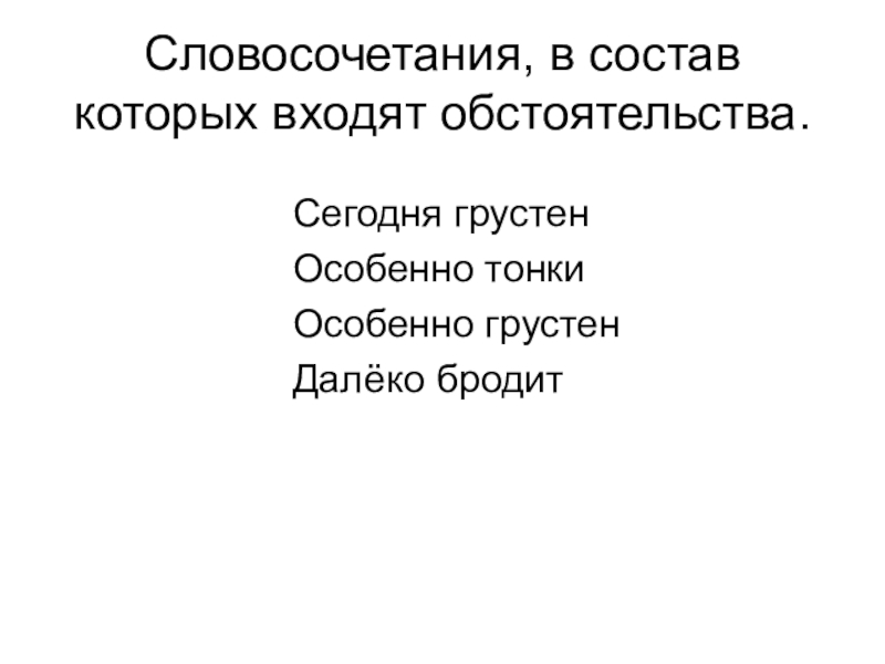 Слайд 11Словосочетания, в состав которых входят обстоятельства.