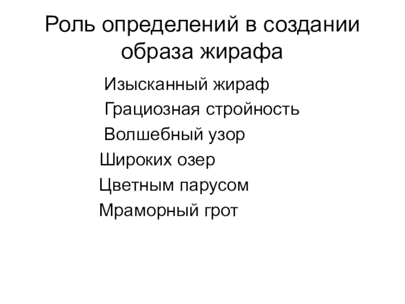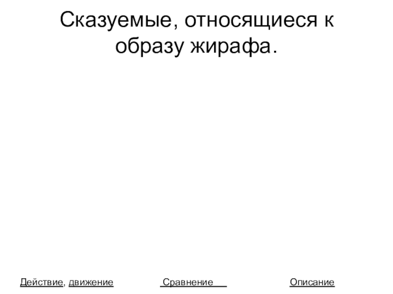 Слайд 9Сказуемые, относящиеся к образу жирафа.