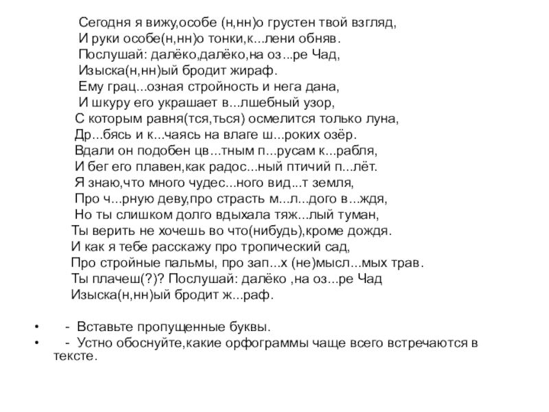- Устно обоснуйте,какие орфограммы чаще всего встречаются в тексте.