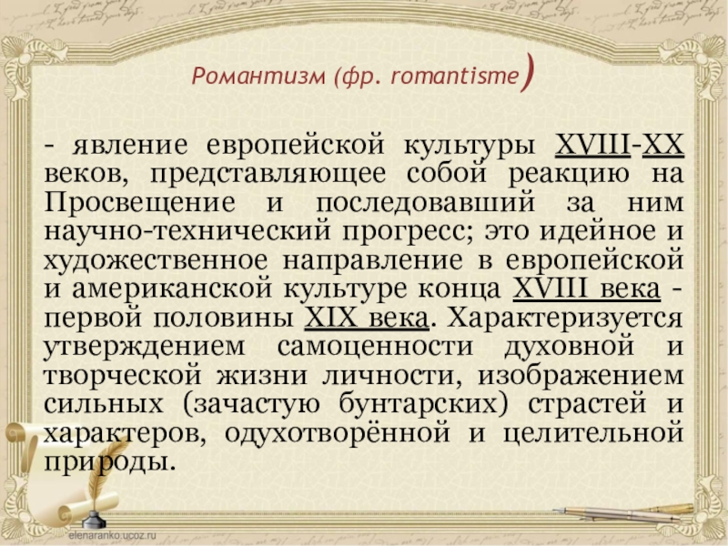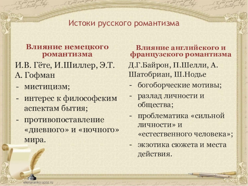 Влияние английского и французского романтизма