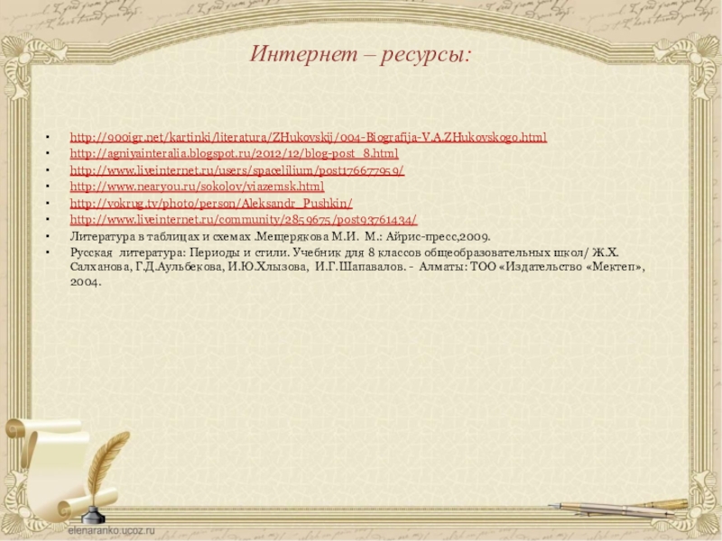 Интернет – ресурсы: