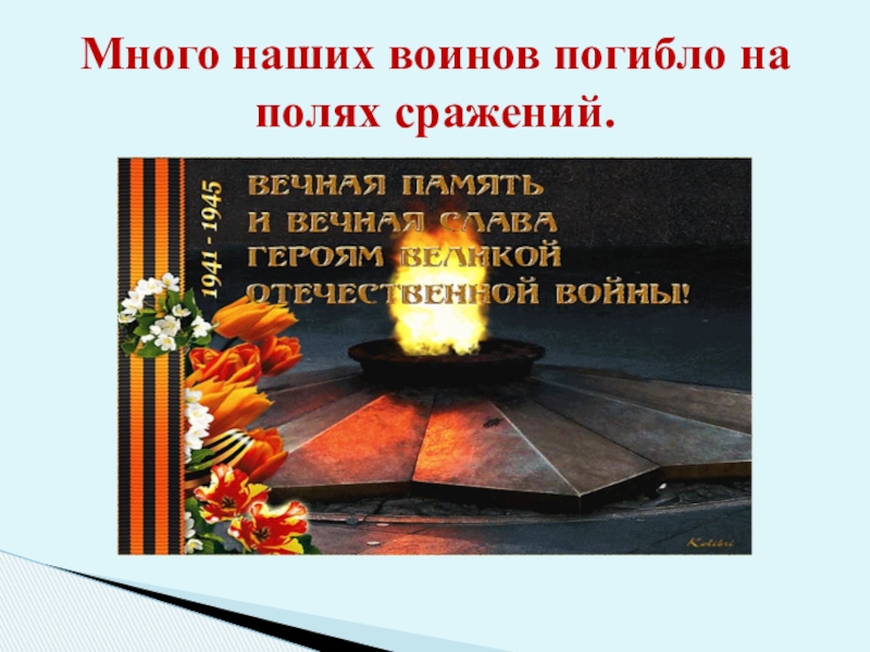 Слайд 4Много наших воинов погибло на полях сраже­ний.