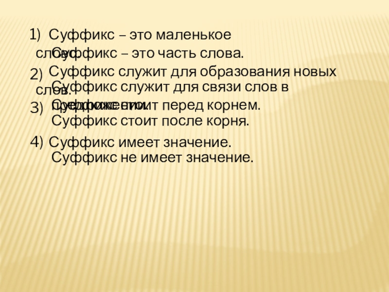 Суффикс служит для связи слов в предложении.